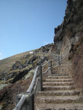 Der Abstieg zum Strand erfolgt über eine lange Treppe, die an der Felswand entlang hinab führt. Vom Parkplatz bis zum Strand sind es ca. 500 m und der Höhenunterschied beträgt ca. 70 m. Aber der Weg lohnt sich, auch wenn man den Strand nur zum Sonnen nutzen will und sich vielleicht ab und zu von den am Strand auslaufenden Wellen umspülen lässt. Mit der Rückkehr zum Parkplatz wartet man am besten bis zum Nachmittag, wenn der Weg zurück im Schatten liegt.